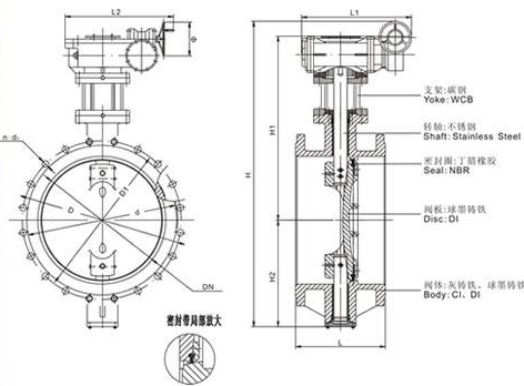 4、D343X雙偏心法蘭蝶閥主要根據剖面、長度、高度、外形等作出說明。