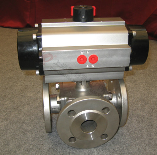 (Q44F)L型三通球閥只能連接相互正交的兩條管道,不能同時保持第三條管道的相互連通,只起分配作用。T型能使三條正交的管道相互聯(lián)通和切斷第三條通道,起分流、合流作用。