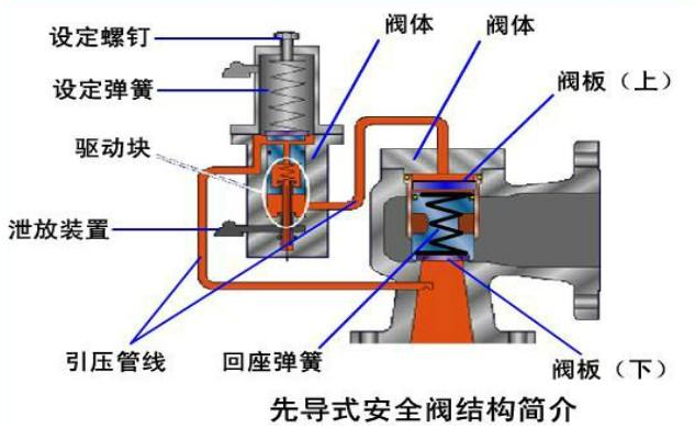 先導式安全閥類似壓力釋放閥,先導式安全閥用于救災應急期間的過壓事件(如,容器過熱和膨脹流體的壓力增加到危險水平)。也稱為先導式安全閥,先導式減壓閥,或先導式安全卸壓閥,根據制造商和應用。在技術上是最通用的術語,但是通常先導式安全閥是用于(如在本文中)是指:即液體閥。